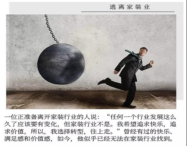 他答:“任何一个行业发展这么久了应该要有变化,但家装行业不是。我希望追求快乐,追求价值,所以,我选择转型,往上走。”曾经有过的快乐、满足感和价值感,如今,他似乎已经无法在家装行业找到。