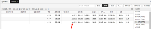 ② 当前客户在设计进度阶段插入"在线设计"按钮,可直接跳转酷家乐软件后台开始设计;