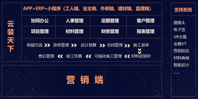 “云装天下APP+ERP+小程序,赋能装企打破部门间的信息孤岛,形成管理上的闭环,做到简化装修流程、缩短产业链条、降低运营成本、提升整个装修效率及品质。”