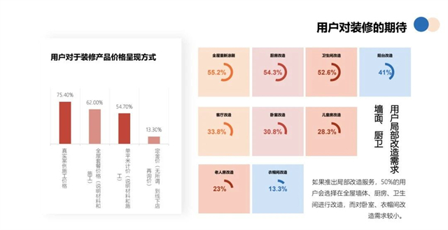 目前存量房竞争市场仍有大片空白,消费者找不到专业的服务商,就找到了装修公司,但是装修公司不重视局部装修,所以很多客户的需求无法满足,比如每一个交房十年以上的小区,它70%、80%的客户,都有局装的需求,但这些人的需求如果咱们装修公司不去触发它,可能就被忽视掉这片蓝海。