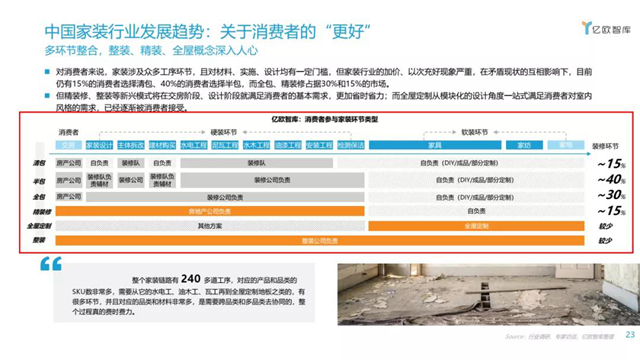 对消费者来说,家装涉及众多工序环节,且对材料、实施、设计均有一定门槛, 整装新兴模式在交房阶段、设计阶段就满足消费者的基本需求,更加省时省力;