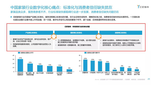 目前家装行业仍面临产品难以标准化、服务流程难以标准化的问题,数字化手段可以有效拆解各个环节,逐个击破、总体联通将带来标准化变革。给消费者带来更好的家装体验。