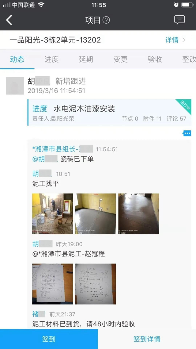 我们可以将工地施工过程完整的记录下来,每个节点配上相应的文字和图片,这样做的意义对于正在服务的业主来说,可以更直观的了解工地的施工过程,同时也有图片记录。