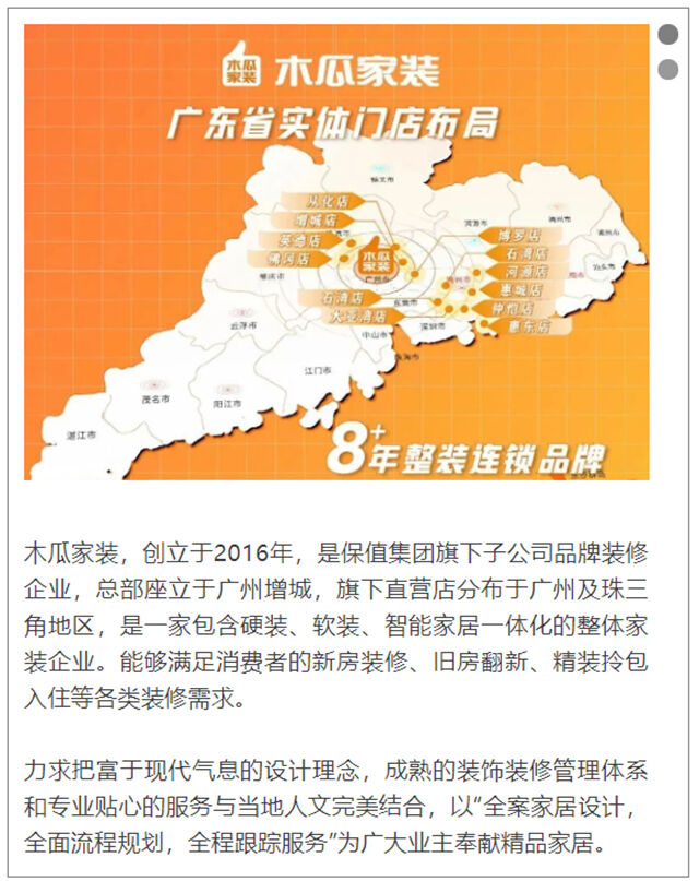 木瓜家装的保值集团总部,有相应完善的业务流程,带来集团化的业务模式。公司整体非常注重人才培养,向珠三角开分店时,快速输送相应的人才,进一步促进区域扩张。