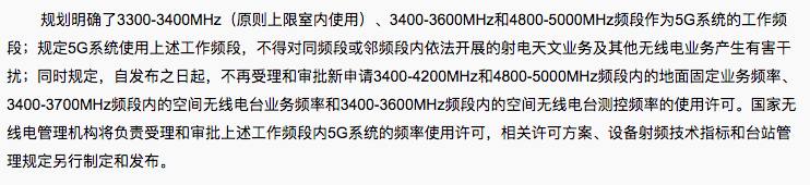 工信部此次公布的5G中频段频率和9月份发布的《中华人民共和国无线电频率划分规定(修订征求意见稿)》有所变动:增加了3400-3600MHz频段,取消了4400-4500MHz。原因可能是4400-4500MHz会对航空无线电造成影响。