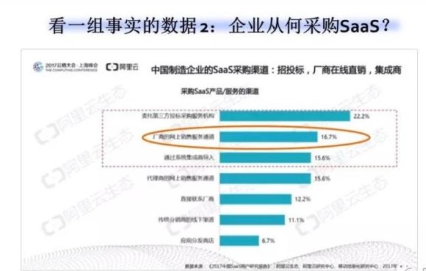 2、而线索, 也就是我们通常说的获客,在互联网时代应该说很有花头可玩。但我们一定要打破 “网上只能获取小客户”的拘囿和桎梏,这是前网络时代的认知。即使是中大客户也一样会通过网络渠道寻找SaaS服务商, 当然也会配合线下渠道介绍,关键是对“网络渠道”的界定是什么?
