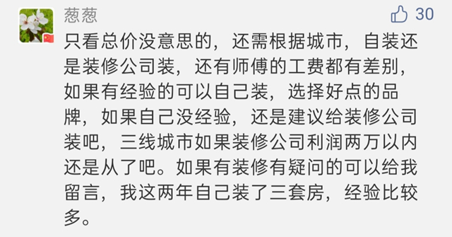 也有相对客观的评论:“如果自己没有经验,建议还是给装修公司装”。