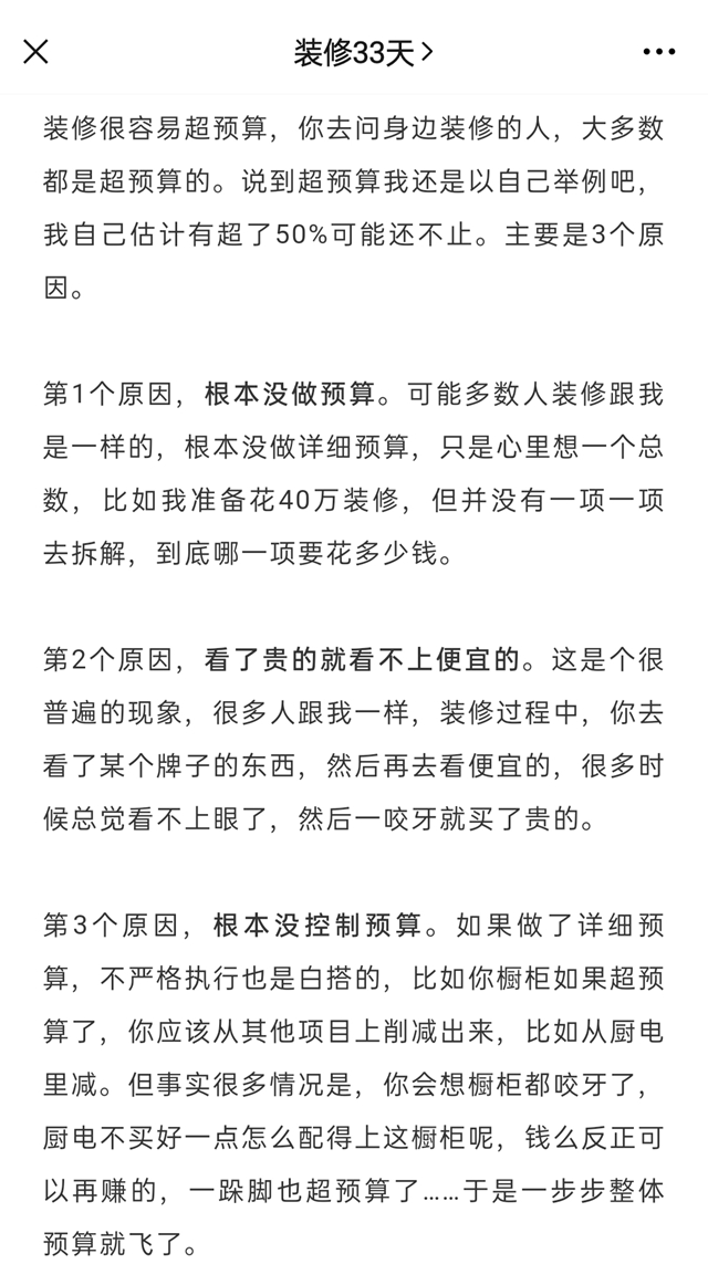 外行看热闹,内行看门道。业主超出预算,或许是个人或其他原因,其中的影响属于个人。