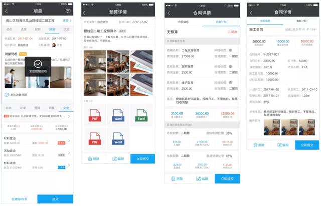 亮点6:设计师手机端完成测量留底、设计表单填写,方案合同的随时调阅